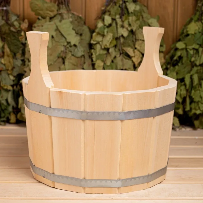 Шайка из липы, 9 л, круглая, нержавеющий обруч — Характеристики