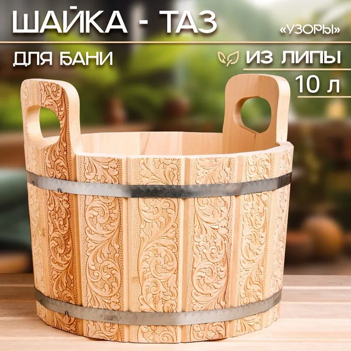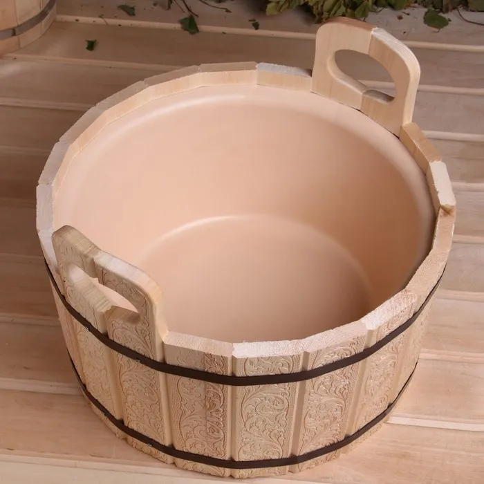 Шайка-таз из липы, 12 л, пластиковая вставка, "Русский узор" — Характеристики