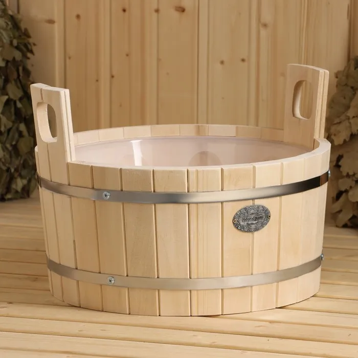 Шайка-таз из липы, 15 л, круглая, пластиковая вставка, "Добропаровъ"