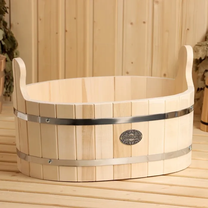Шайка-таз из липы, 15 л, овальная, нержавеющий обруч, "Добропаровъ" — Характеристики