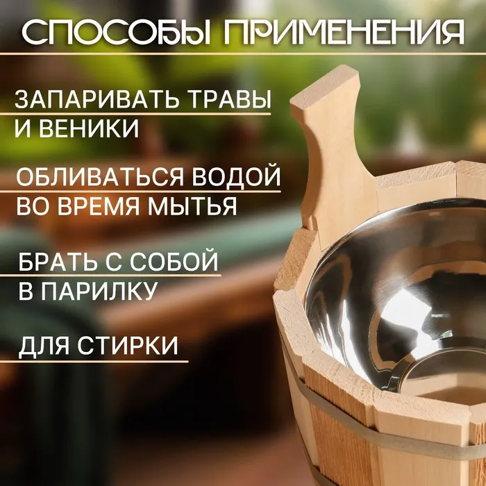 Шайка- ушат, бадья 3 л, с нержавеющей вставкой, ТЕРМО — Характеристики
