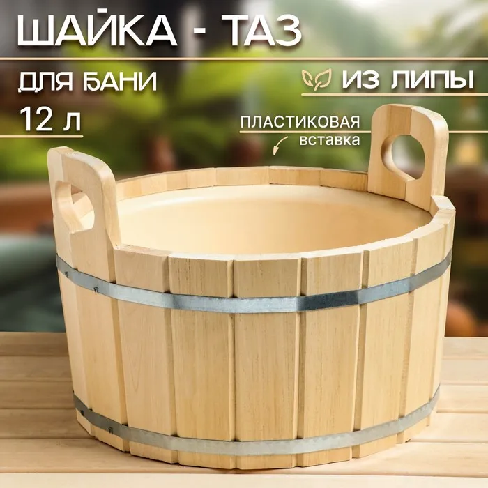 Шайка-ушат, бадья из липы, 3 л, одноручная, нержавеющая вставка, "Добрыня" — Характеристики