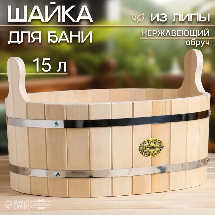 Шайка-ушат, бадья из липы, 5 л, одноручная, нержавеющий обруч, "Добропаровъ" — Характеристики