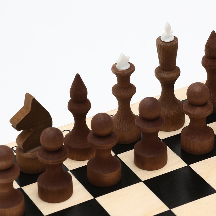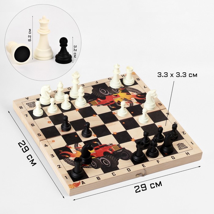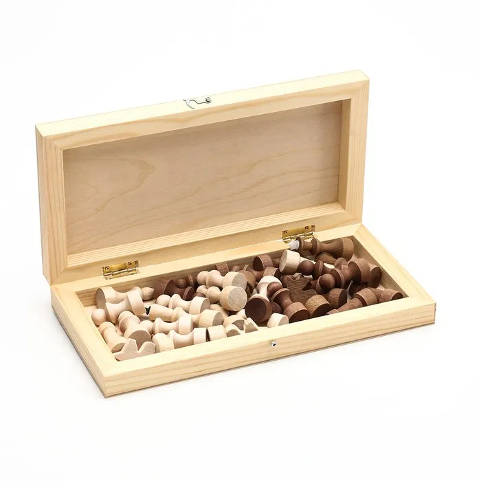 Шахматная деревянная лакированная доска из качественных пиломатериалов лиственных пород. Размер доски в разложенном виде 29 х 29 см. Доска имеет аккуратную и надежную фурнитуру и вместительный отсек для хранения.