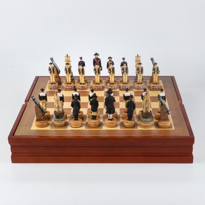 Шахматы деревянные подарочные сувенирные «Морское сражение», 36×36 см, король h=8 см, пешка h=6.5 — Характеристики