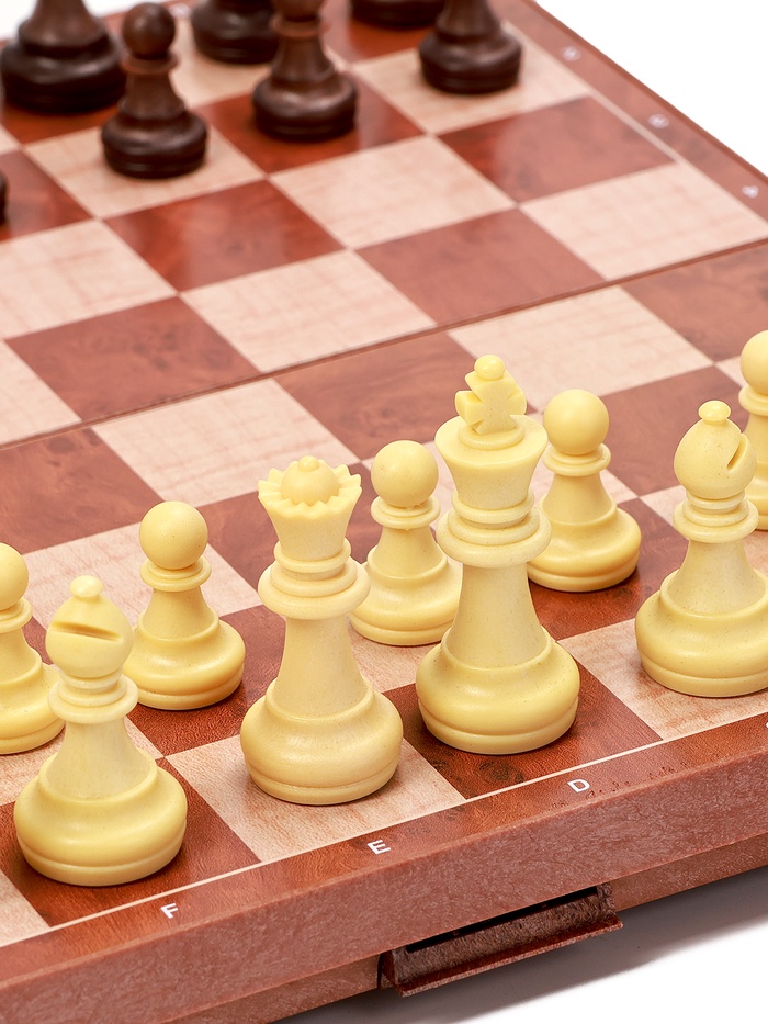 Шахматы магнитные 24×24 см, король h=4.9 см, пешка h=2.4 см