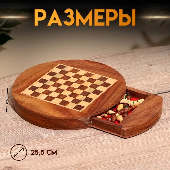 Шахматы магнитные 25,5х25,5х4 см, дерево шишам – замечательный подарок для любителя этой сложной тактической игры. Специальный выдвижной ящичек – удобное место для хранения фигур.