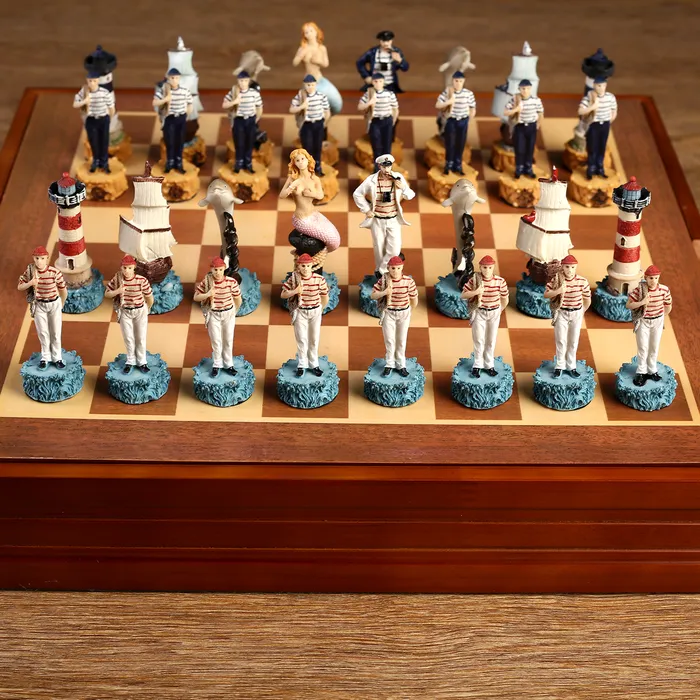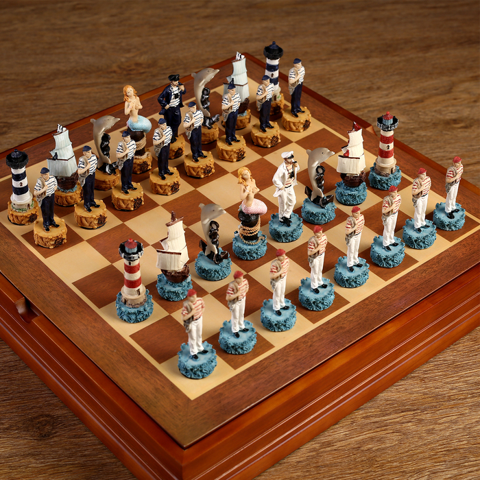 Шахматы сувенирные «Морские истории», король 8 см, пешка 6 см, 36×36 см — Характеристики