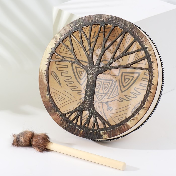 Шаманский бубен «Птица», музыкальный инструмент, с колотушкой, 5×25×25 см — Характеристики