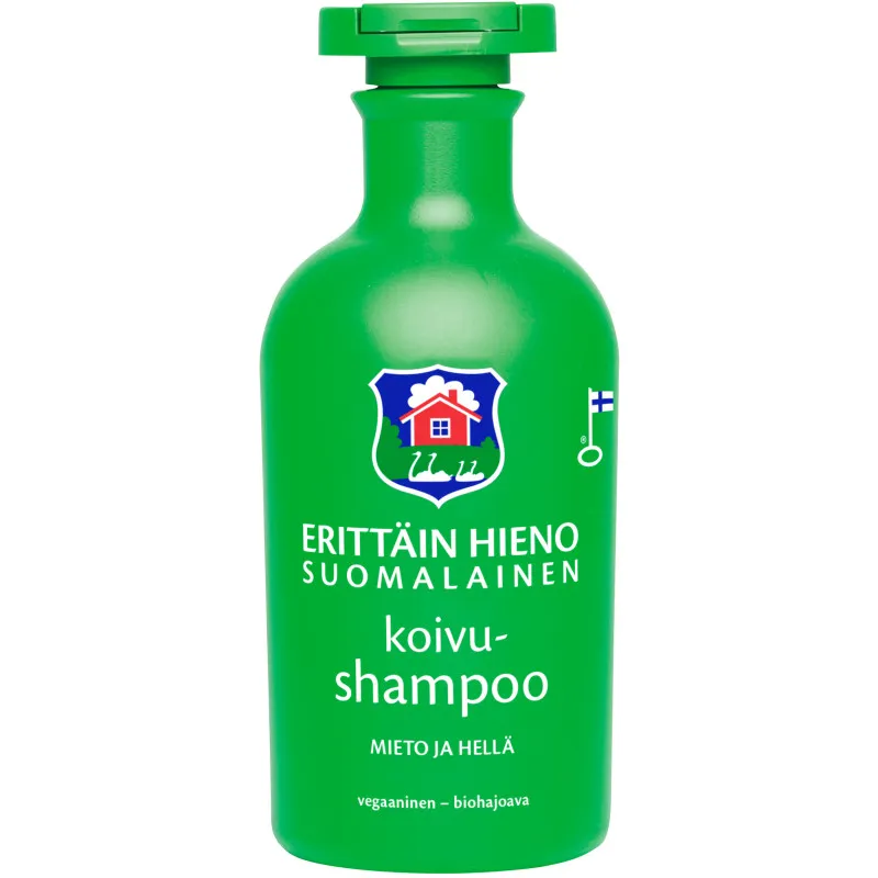 Erittäin Hieno Suomalainen koivushampoo содержит натуральный эликсир - экстракт березы, укрепляющий тонкие финские волосы. Экстракт из березовых листьев веками использовался в качестве ухаживающего ингредиента для ополаскивания волос. Шампунь Erittäin Hieno Suomalainen koivushampoo особенно подходит для частого мытья тонких волос.