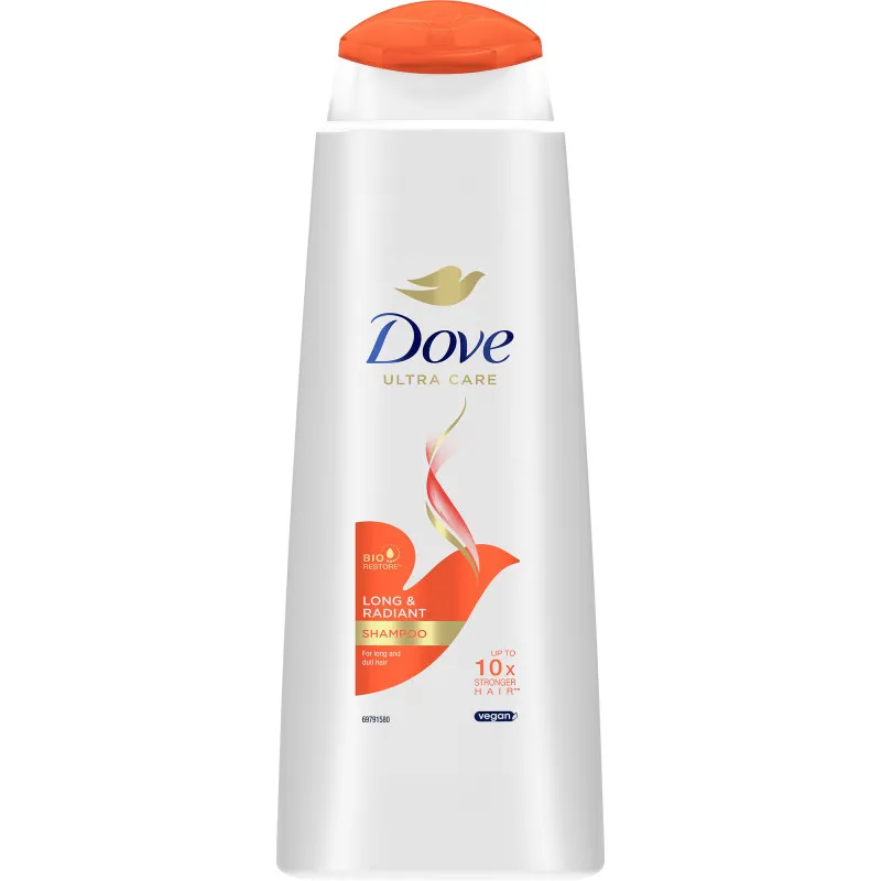 Шампунь Dove Long & Radiant разработан специально для длинных волос, делая их красивыми, блестящими и полными жизни. Он питает длинные и уставшие волосы от корней до кончиков. Продукт является веганским. Объем упаковки - 400 мл.