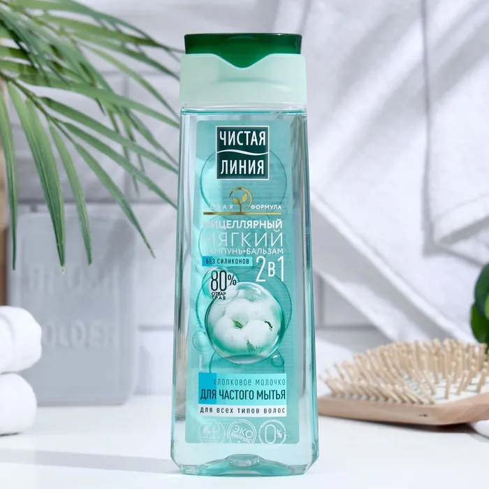 Шампунь-бальзам для волос 2 в 1 Чистая линия «Хлопковое молочко», 250 мл — Характеристики