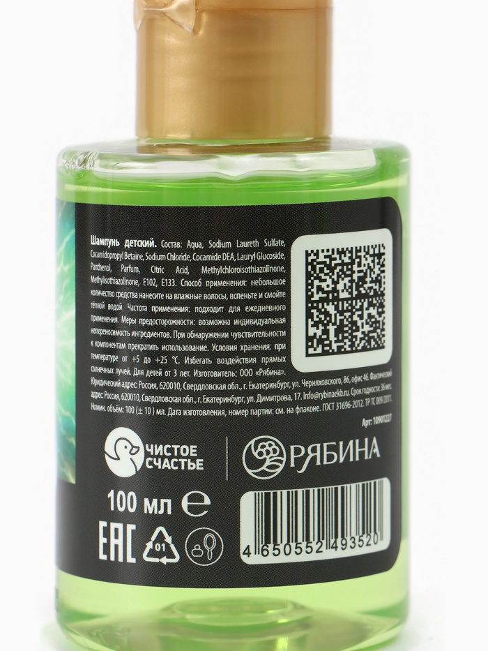 Шампунь детский, аромат яблочный взрыв, 100 мл, Халк — Характеристики