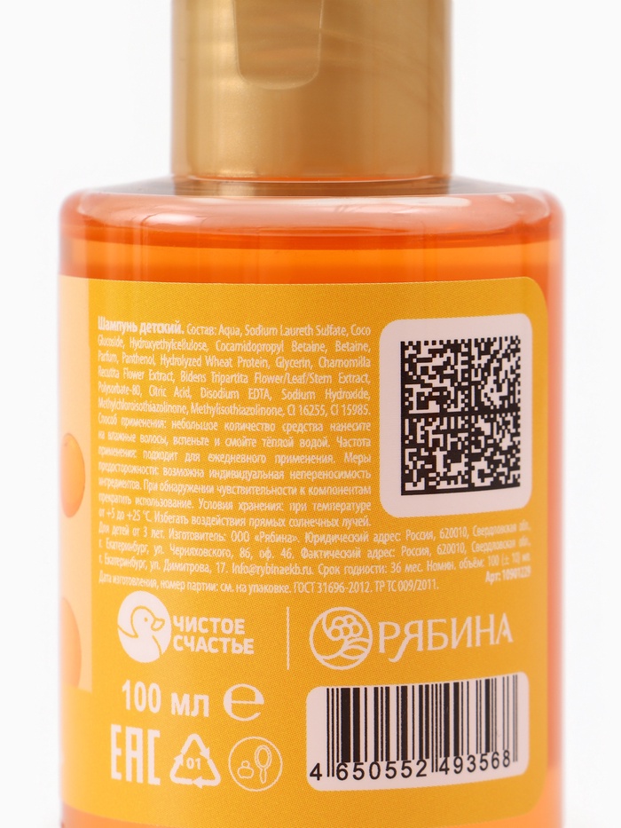 Шампунь детский, аромат мандариновый лимонад, 100 мл, Кошечка — Характеристики