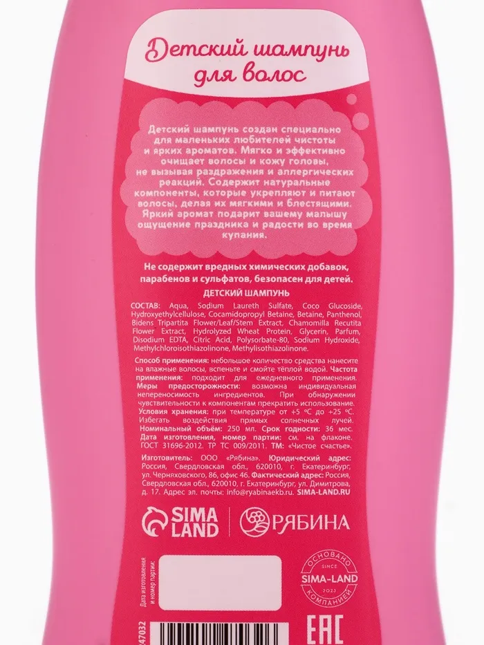 Шампунь детский для девочек «Чудесный шампунь», аромат дынное мороженое, 250 мл, Чистое счастье — Характеристики