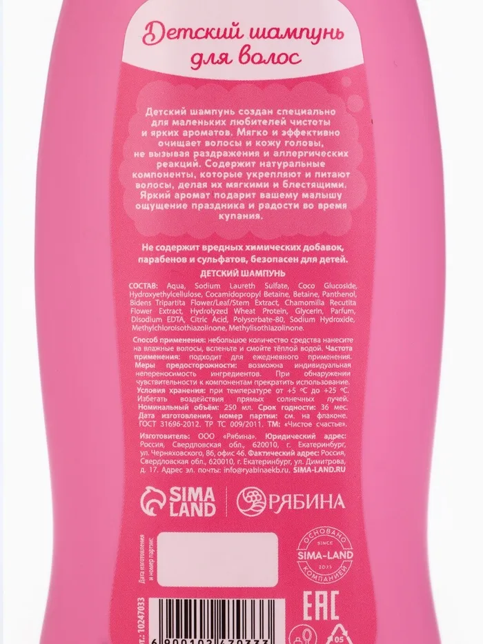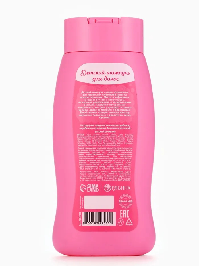 Шампунь детский для девочек «Самая красивая», легкое расчесывание, 250 мл, Чистое счастье — Характеристики