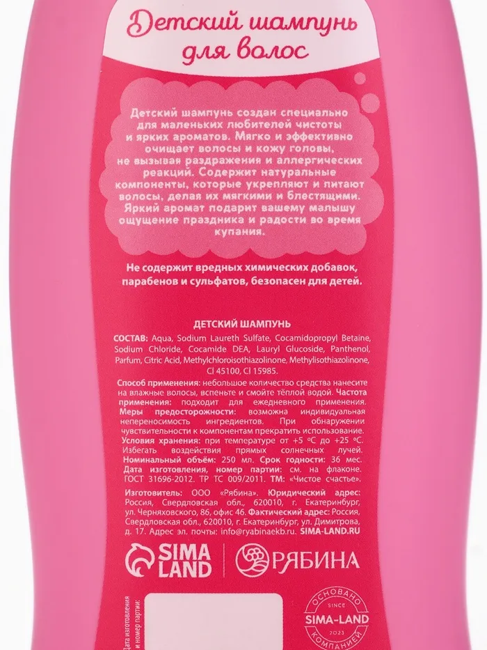 Шампунь детский для девочек «Волшебный шампунь», аромат сказочная ягода, 250 мл, Чистое счастье — Характеристики