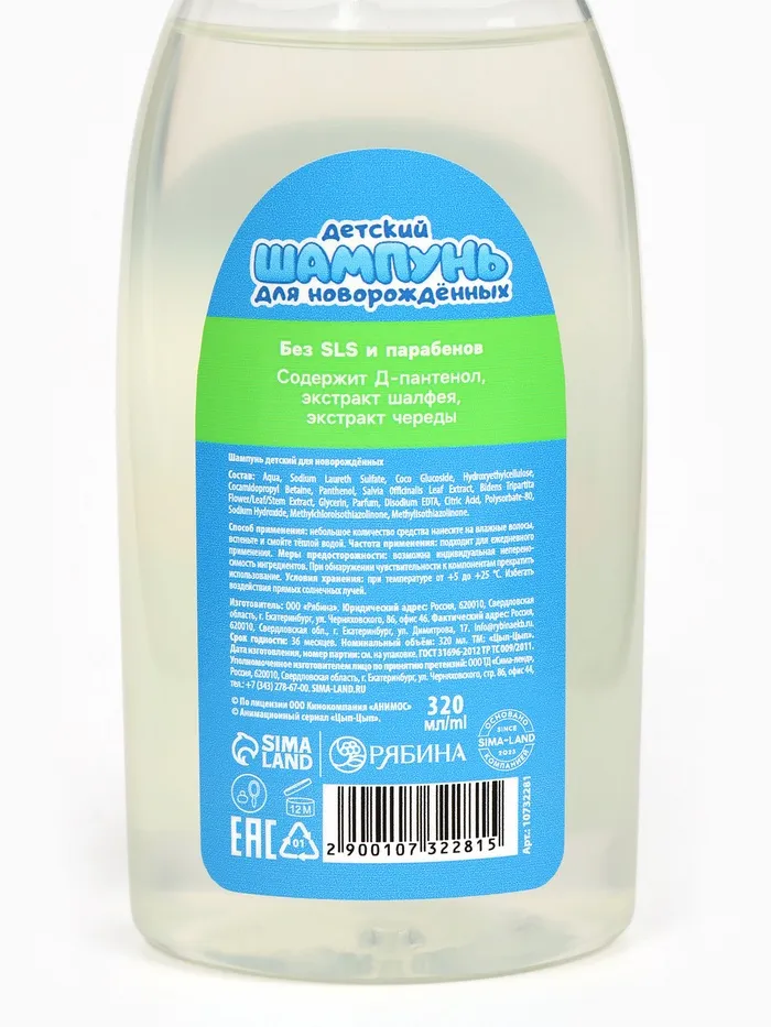 Шампунь детский для новорожденных, 320 мл, ромашка, ЦЫП-ЦЫП — Характеристики