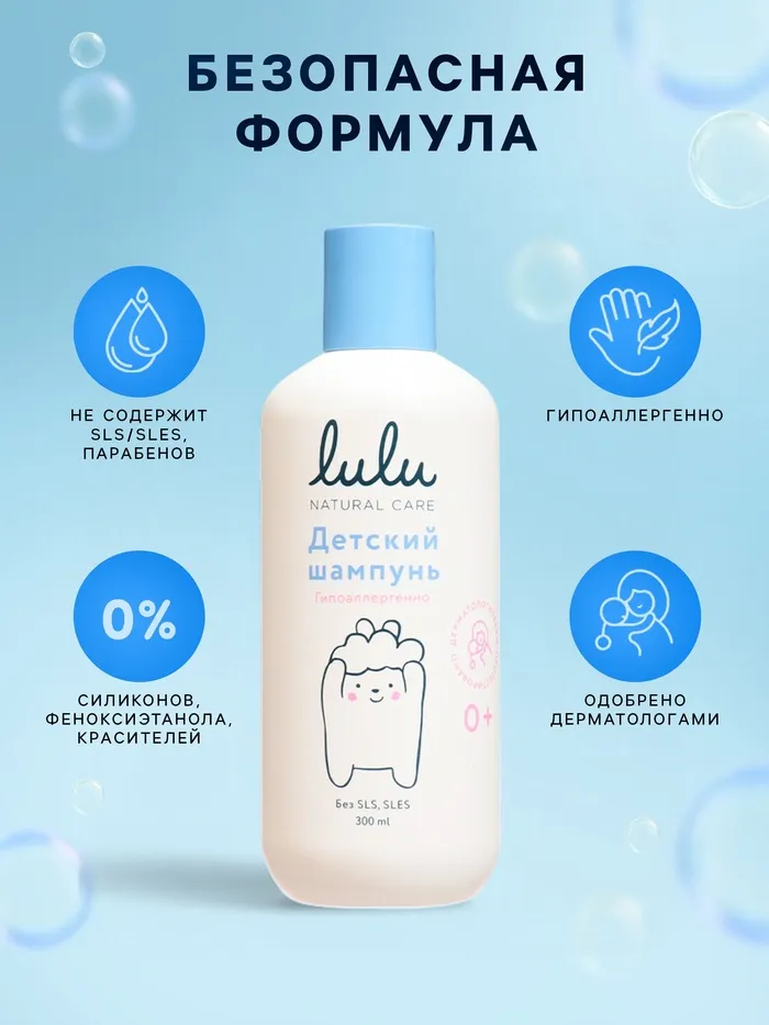 Шампунь детский LULU с протеинами пшеницы, без парабенов и силиконов – это безопасное и бережное средство для ухода за детскими волосами, разработанное с учетом всех особенностей чувствительной кожи головы и нежных волос малышей.