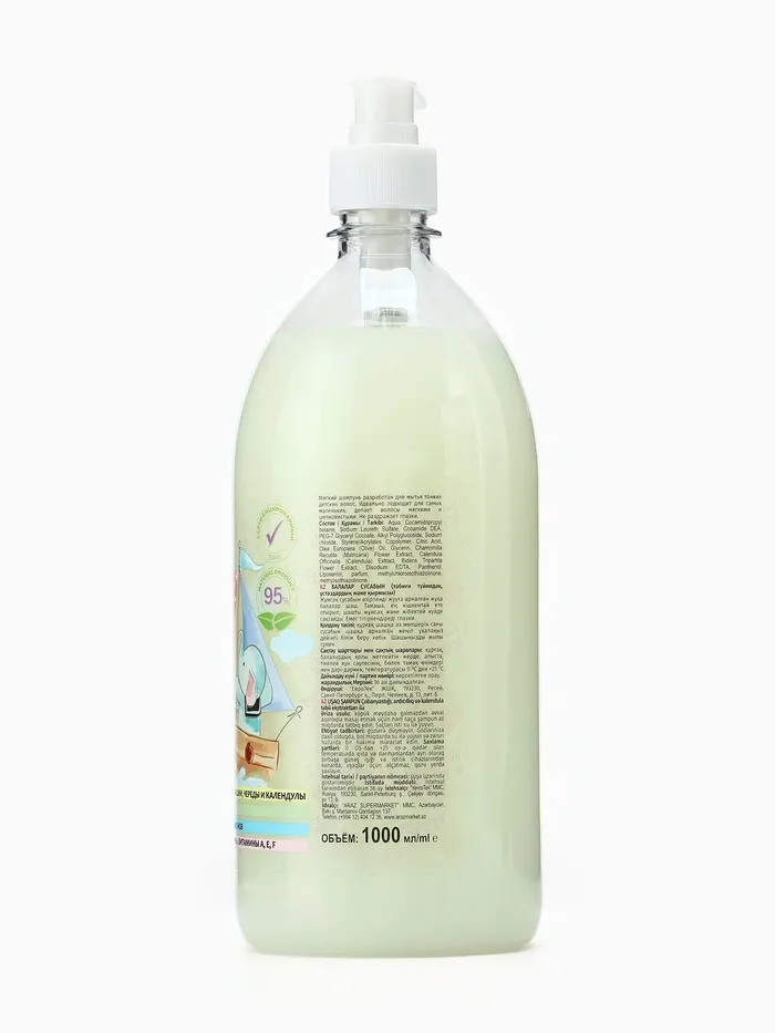 Состав: aqua, cocamidopropyl betaine, sodium laureth sulfate, cocamide DEA, PEG-7 (glyceryl cocoate), alkyl polyglucoside, sodium chloride, styrene/acrylates copolymer, citric acid, olive oil, glycerin, chamomilla extract, calendula extract, bidens tripartita extract, EDTA, D-panthenol, vitamin A, E, F, parfum, methylchloroisothiazolinone, methylisothiazolinone.