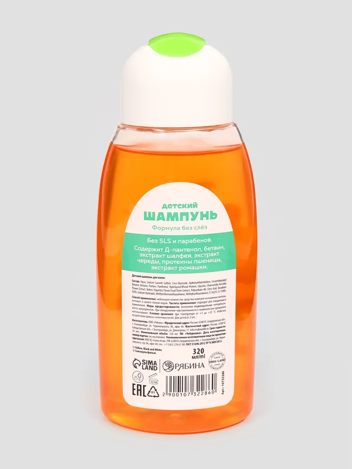 Шампунь детский с D-пантенолом и апельсином, 320 мл, Чебурашка — Характеристики