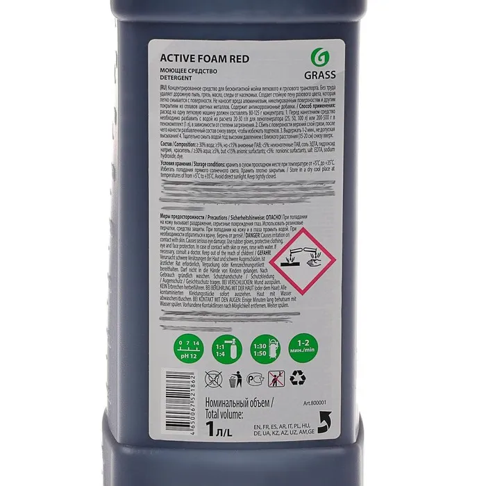 Шампунь для бесконтактной мойки Grass Active Foam Red, 1л (1:30-1:50) — Характеристики