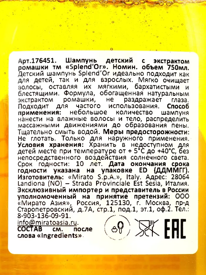 Мягкая забота с первых прикосновений — SPLENDOR детский шампунь создан специально для деликатного очищения волос и кожи головы малышей. Его нежная формула с нейтральным pH не вызывает слёз, не сушит кожу и легко смывается, оставляя волосы чистыми, мягкими и приятно пахнущими. Идеально подходит для ежедневного использования даже для самых чувствительных детских волос.