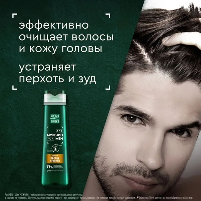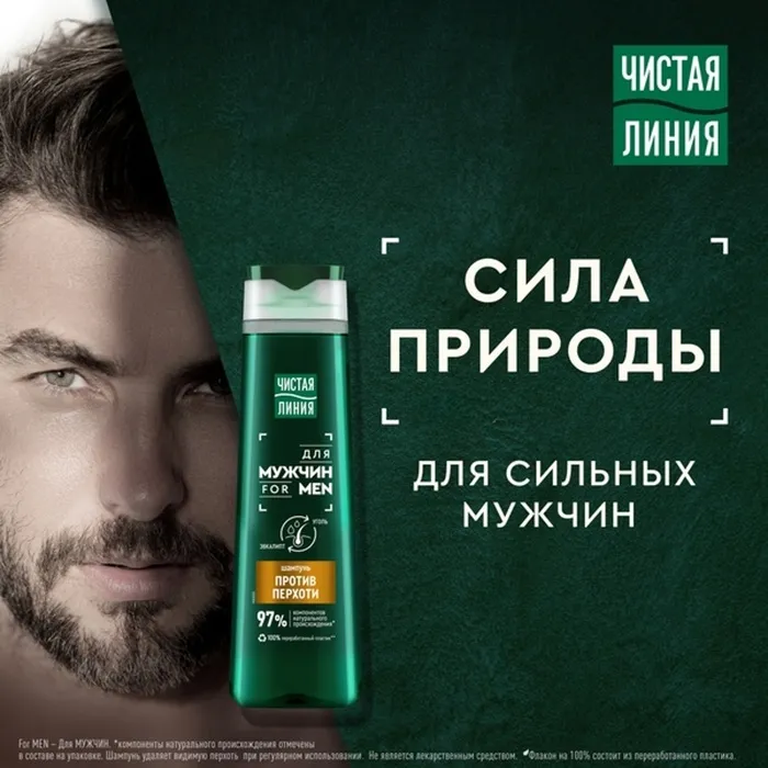 Забудьте о перхоти! Только чистые и ухоженные волосы с новинкой для мужчин от Чистая Линия – шампунем от перхоти.
