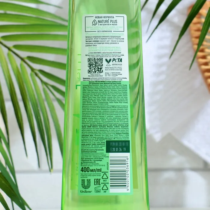 Состав: Aqua, Sodium Laureth Sulfate, Cocamide DEA, Sodium Chloride, PEG-7 Glyceryl Cocoate, Achillea Millefolium Extract, Chamomilla Recutita (Matricaria) Flower Extract, Chelidonium Majus Extract, Hydrolyzed Wheat Protein, Hydroxypropyl Guar Hydroxypropyltrimonium Chloride, Hypericum Perforatum Flower/Leaf/Stem Extract, Laurdimonium Hydroxypropyl Hydrolyzed Wheat Protein, Trifolium Pratense (Clover) Flower Extract (Экстракт клевера), Urtica Dioica (Nettle) Leaf Powder, Acetic Acid, Butyloctanol, Citric Acid, Cocamidopropyl Betaine, Disodium EDTA, Glycerin, Methylchloroisothiazolinone, Methylisothiazolinone, Parfum, Phenoxyethanol, Silicone Quaternium-16, Sodium Benzoate, Undeceth-11, Undeceth-5, Butylphenyl Methylpropional, Hexyl Сinnamal, Hydroxycitronellal, Linalool, CI 14720, CI 19140, CI 42090.