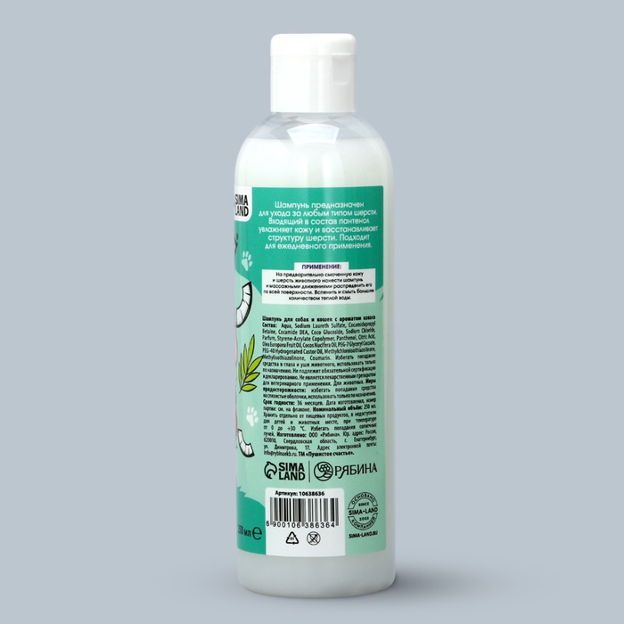 Шампунь для собак и кошек с ароматом кокоса, 250 мл — Характеристики