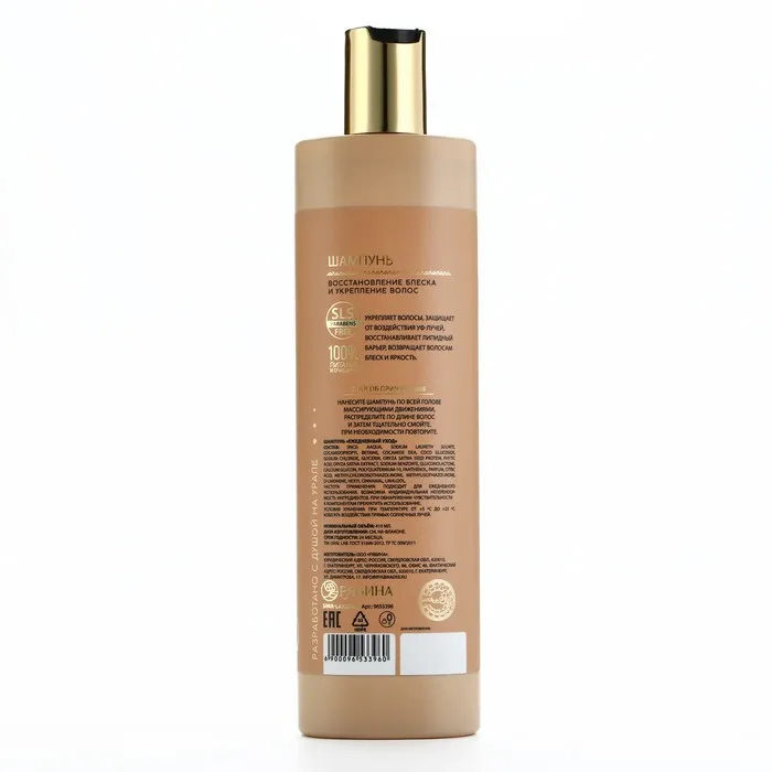 Шампунь для волос, 410 мл, восстановление блеска и укрепление, BASIC LINE by URAL LAB — Характеристики