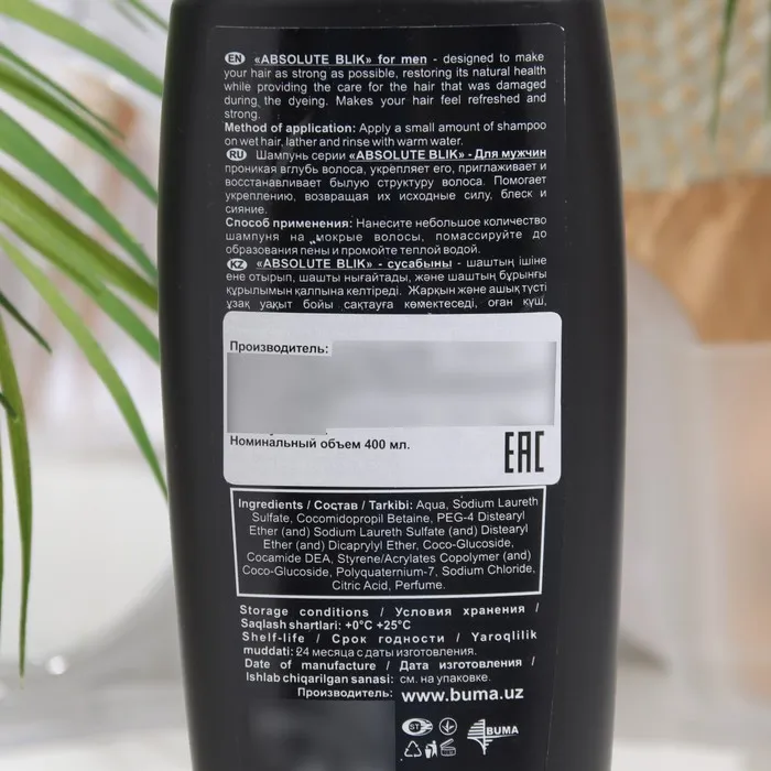 Шампунь для волос Absolute Blik мужской, 400 мл — Характеристики