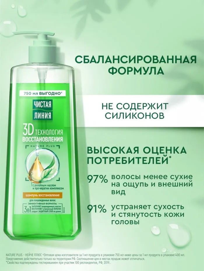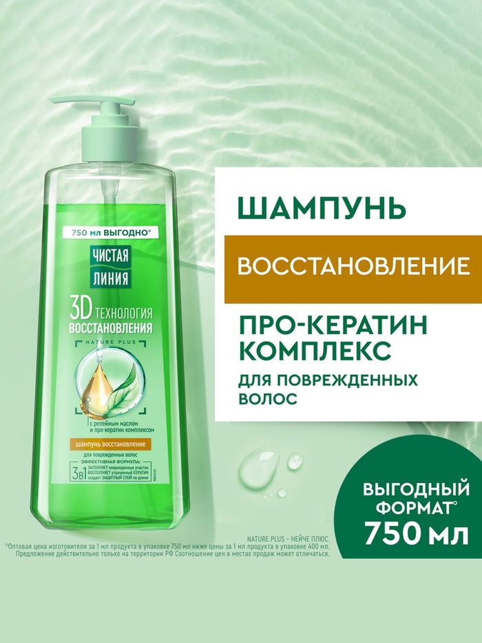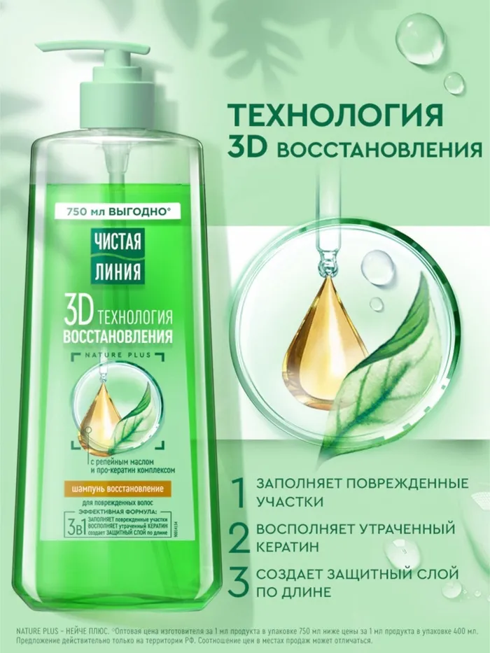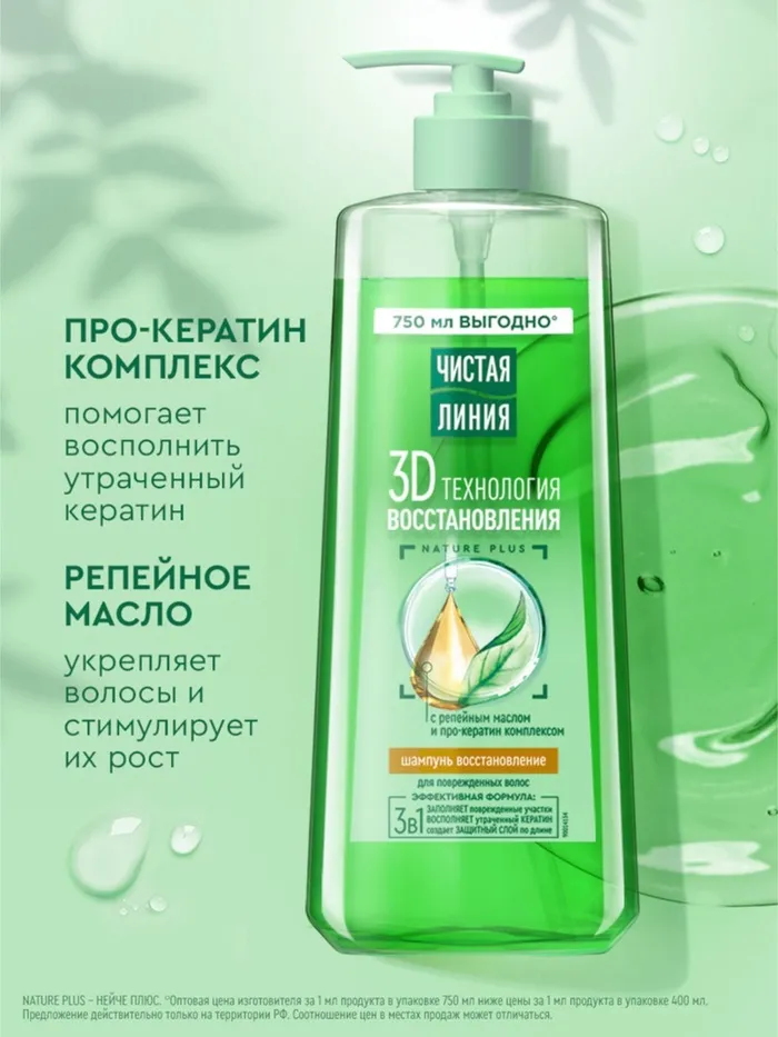 Шампунь Чистая Линия на основе репейного масла и комплекса Pro-Кератин глубоко укрепляет волосы от самых корней и восстанавливает повреждённую структуру по всей длине. Натуральное репейное масло питает и активизирует рост волос, а кератиновый комплекс заполняет повреждённые участки, возвращая волосам гладкость, упругость и блеск.