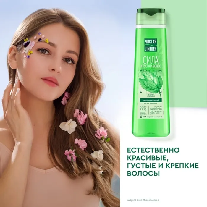 Главный секрет женской красоты — роскошные здоровые локоны, которые обеспечит Вам шампунь «Чистая линия» «Укрепляющий».