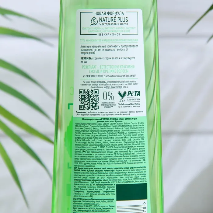 Шампунь для волос Чистая линия «Укрепляющий», крапивой, 400 мл — Характеристики