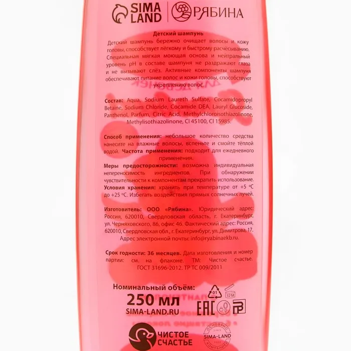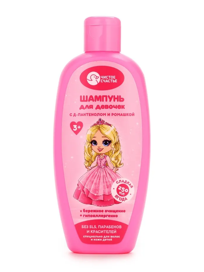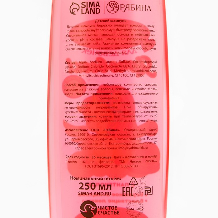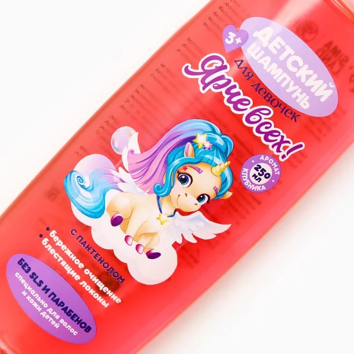 Шампунь для волос детский «Ярче всех», 250 мл, аромат клубники, 3+, Чистое счастье — Характеристики