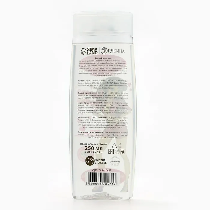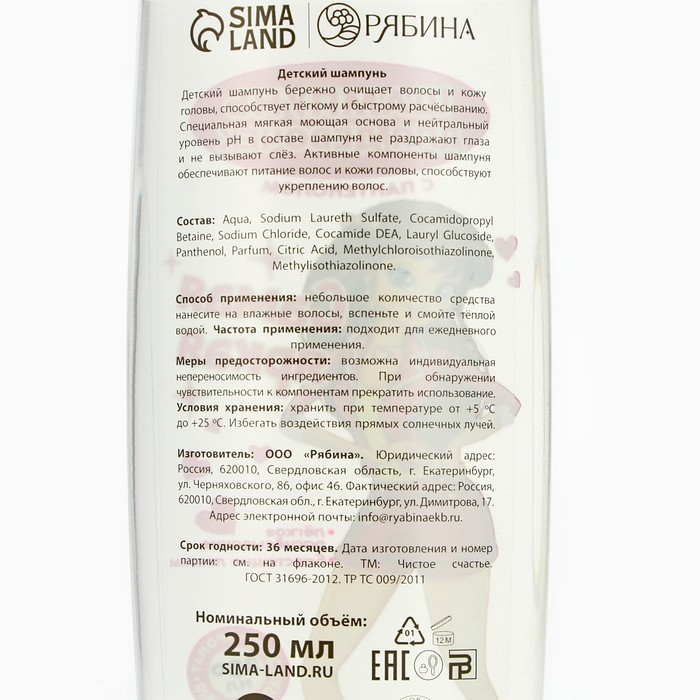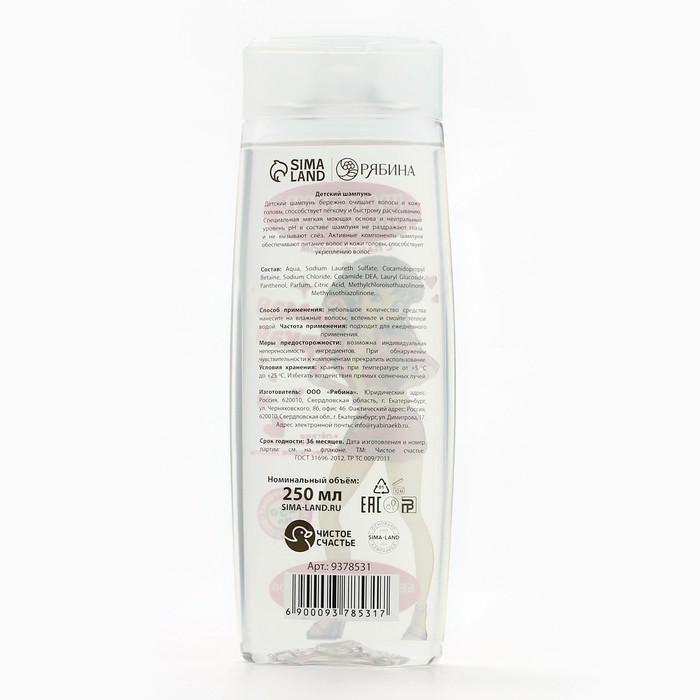 Шампунь для волос детский «Самая яркая», 250 мл, аромат сахарной ваты, 3+, Чистое счастье — Характеристики