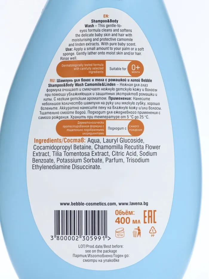 Шампунь для волос и тела c ромашкой и липой Bebble Shampoo & Body Wash Camomile & Linden. Нежная для глаз формула очищает и смягчает нежную детскую кожу и волосы при помощи увлажняющих и защитных экстрактов ромашки и липы. С легким детским ароматом.