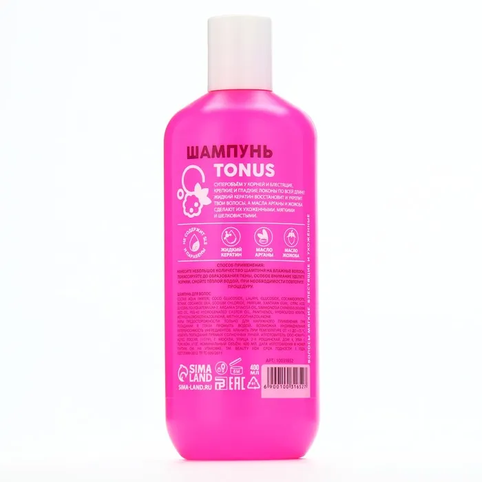 AQUA (WATER), COCO GLUCOSIDE, LAURYL GLUCOSIDE, COCAMIDOPROPYL BETAINE, COCAMIDE DEA, SODIUM CHLORIDE, PARFUM, XANTHAN GUM, CITRIC AСID, GLYCERIN, POLYQUATERNIUM-7, ARGANIA SPINOSA OIL, SIMMONDSIA CHINENSIS (JOJOBA) SEED OIL, PEG-40 HYDROGENATED CASTOR OIL, PANTHENOL, HYDROLYZED KERATIN, METHYLCHLOROISOTHIAZOLINONE, METHYLISOTHIAZOLINONE.