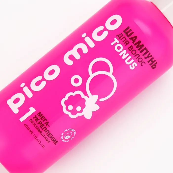 Шампунь для волос, мегаукрепление, 400 мл, аромат малиновой жвачки, PICO MICO — Характеристики