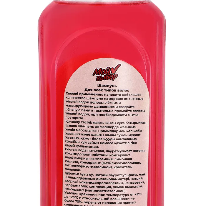 - Шампунь "Мой выбор" подходит для всех типов волос – от нормальных до сухих и поврежденных, обеспечивая их здоровье и ухоженность.