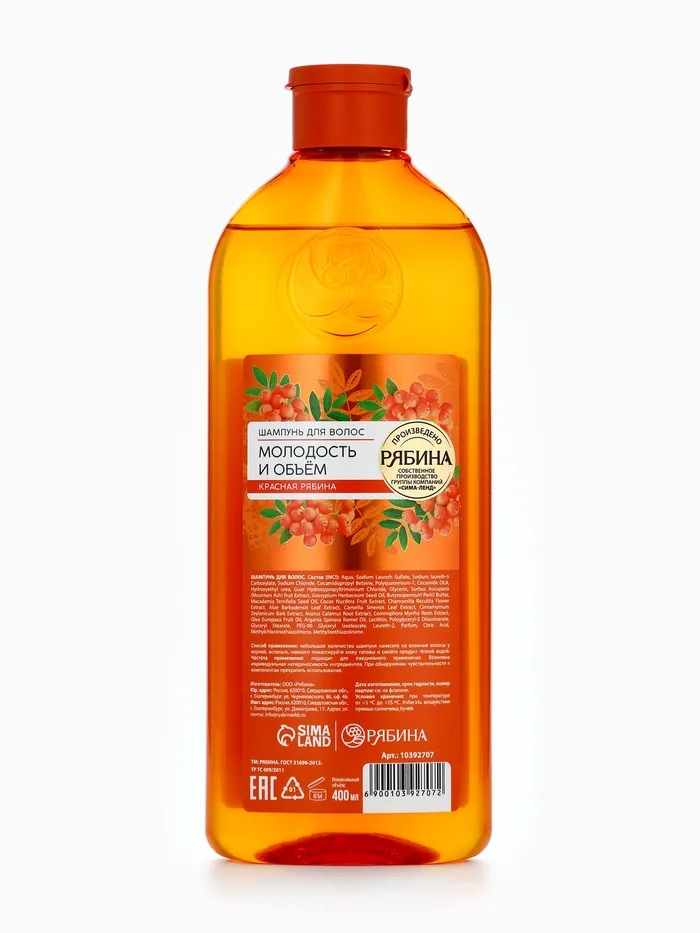 Шампунь для волос, молодость и объем, аромат рябины, 400 мл, Рябина — Характеристики