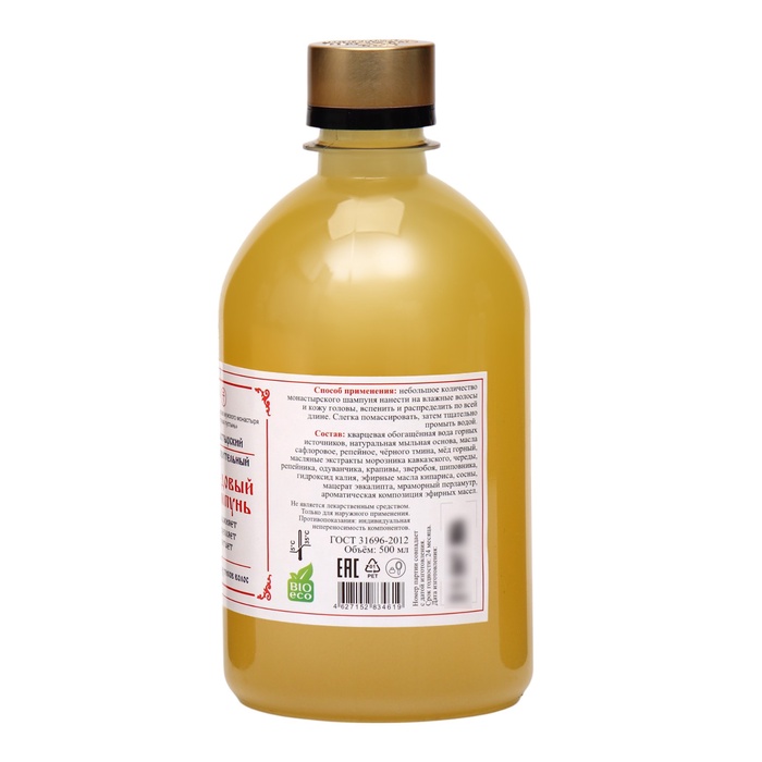 Способ применения: небольшое количество монастырского шампуня нанести на волосы, вспенить и распределить пену по всей длине волос. Слегка помассировать кожу головы, затем тщательно промыть кожу и волосы водой.