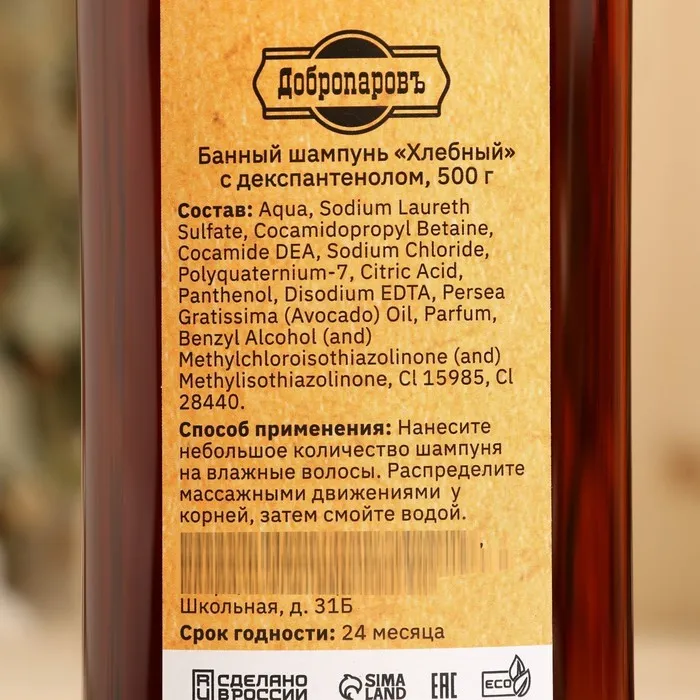 Хлебный шампунь придаёт блеск и ухоженный вид волосам, питает клетки кожи головы, активно восстанавливает структуру волос и деликатно очищает. Средство подходит для всех типов волос: сухих, безжизненных, окрашенных и с секущимися кончиками. В состав входит декспантенол, который эффективен при восстановлении и увлажнении волос с повреждённой структурой. Он проникает в структуру волоса, питает и увлажняет его изнутри и по всей длине: от корней до кончиков. Придаёт волосам гибкость, делает их упругими, эластичными.