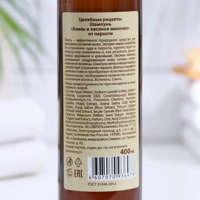 Шампунь для волос от перхоти "Целебные рецепты" хмель и овсяное молочко, 400 мл — Характеристики