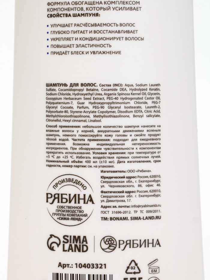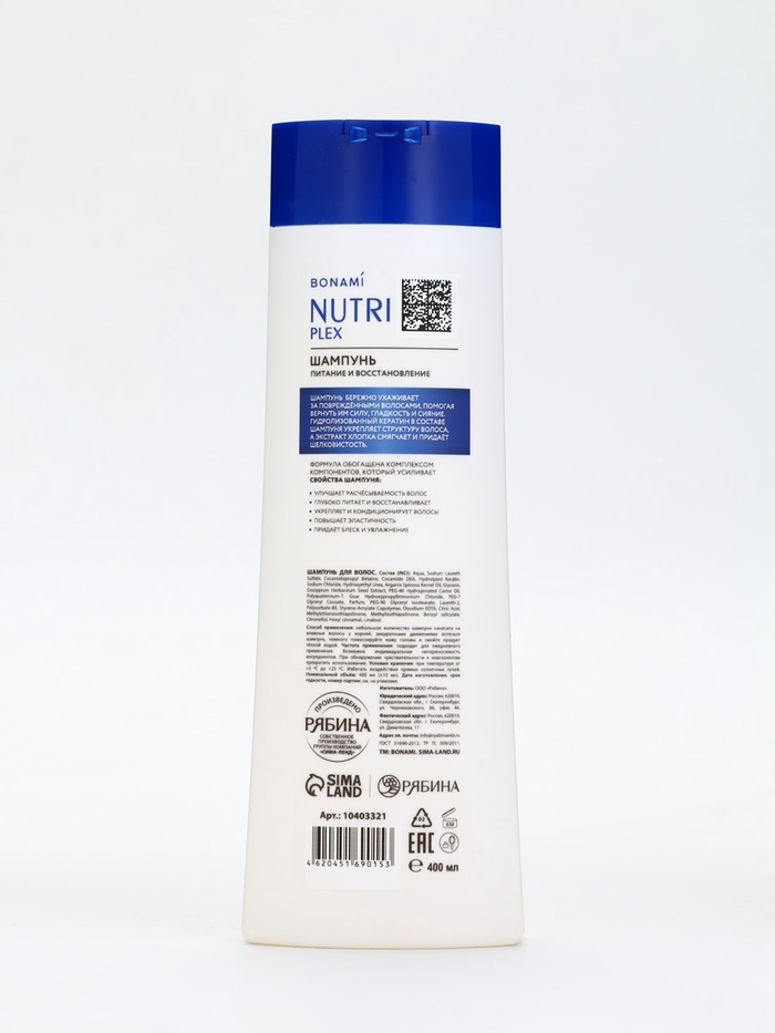 Шампунь для волос «Питание и восстановление», 400 мл, BONAMI — Характеристики