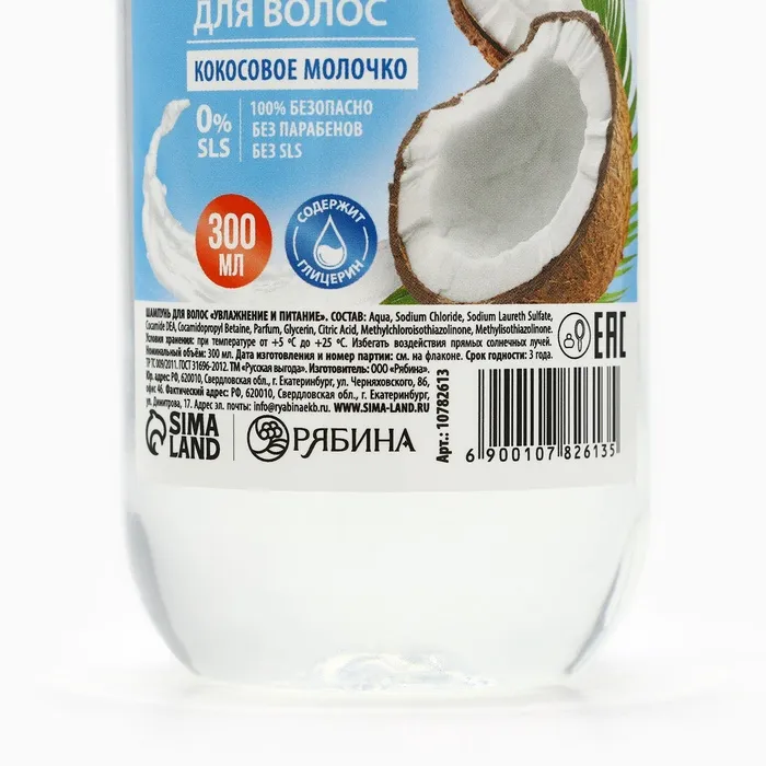 Шампунь для волос РУССКАЯ ВЫГОДА, 300 мл, аромат кокосового молочка — Характеристики