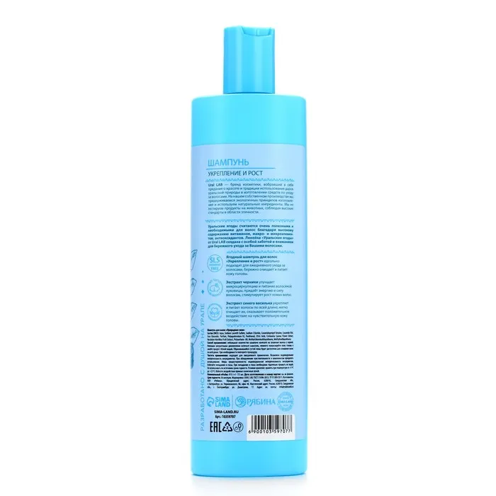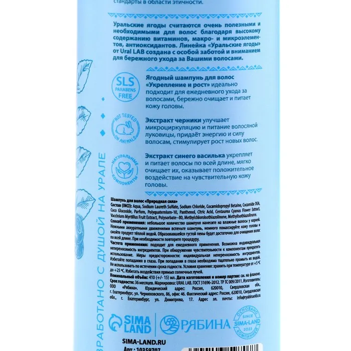 Шампунь для волос с экстрактом черники и василька, укрепление и рост, 410 мл, URAL LAB — Характеристики