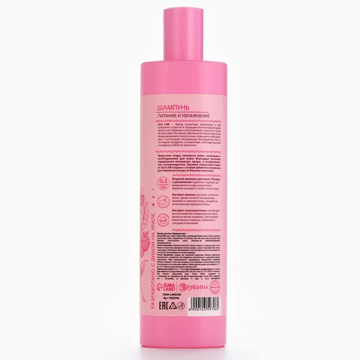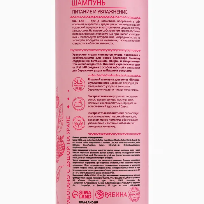 Шампунь для волос с экстрактом малины и тысячелистника, питание и увлажнение, 410 мл, URAL LAB — Характеристики