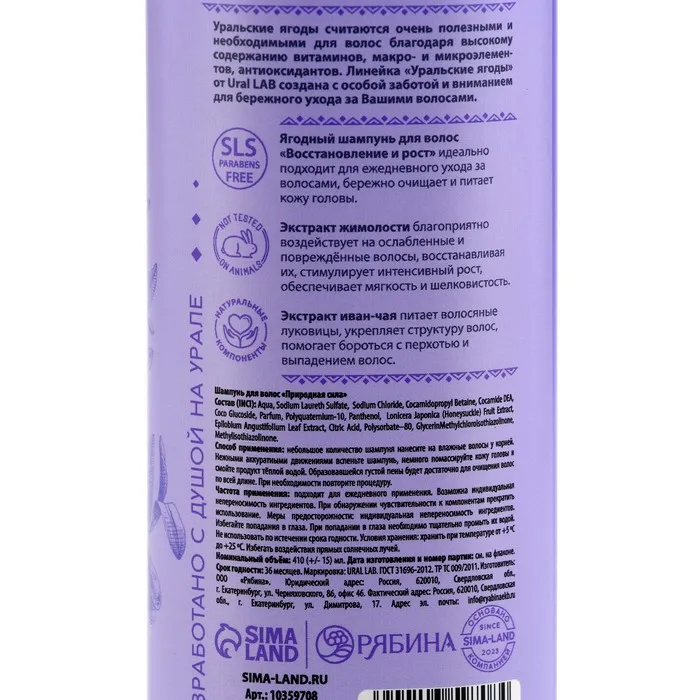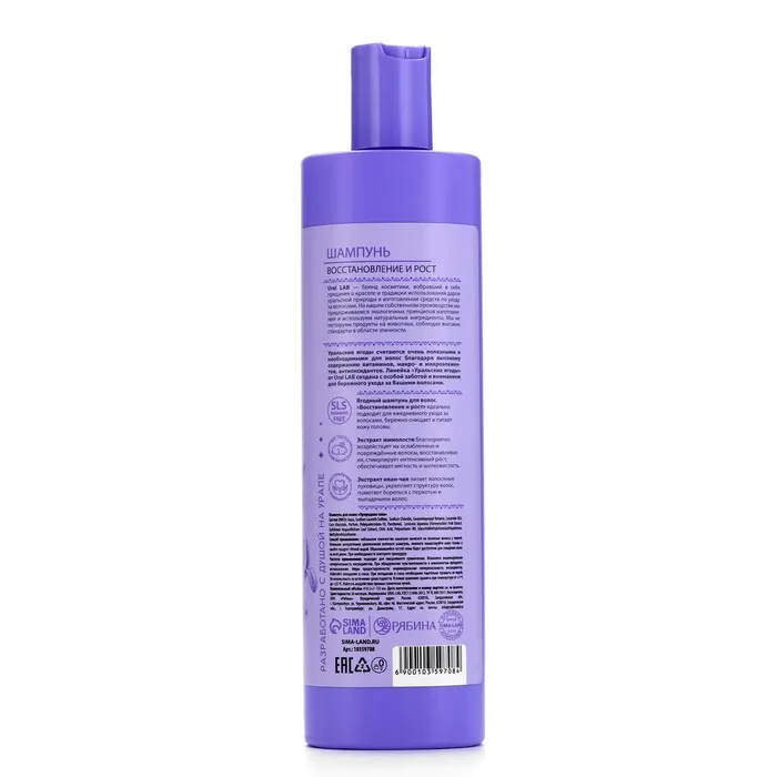 Шампунь для волос, с экстрактом жимолости и иван-чая, восстановление и рост, 410 мл, URAL LAB — Характеристики